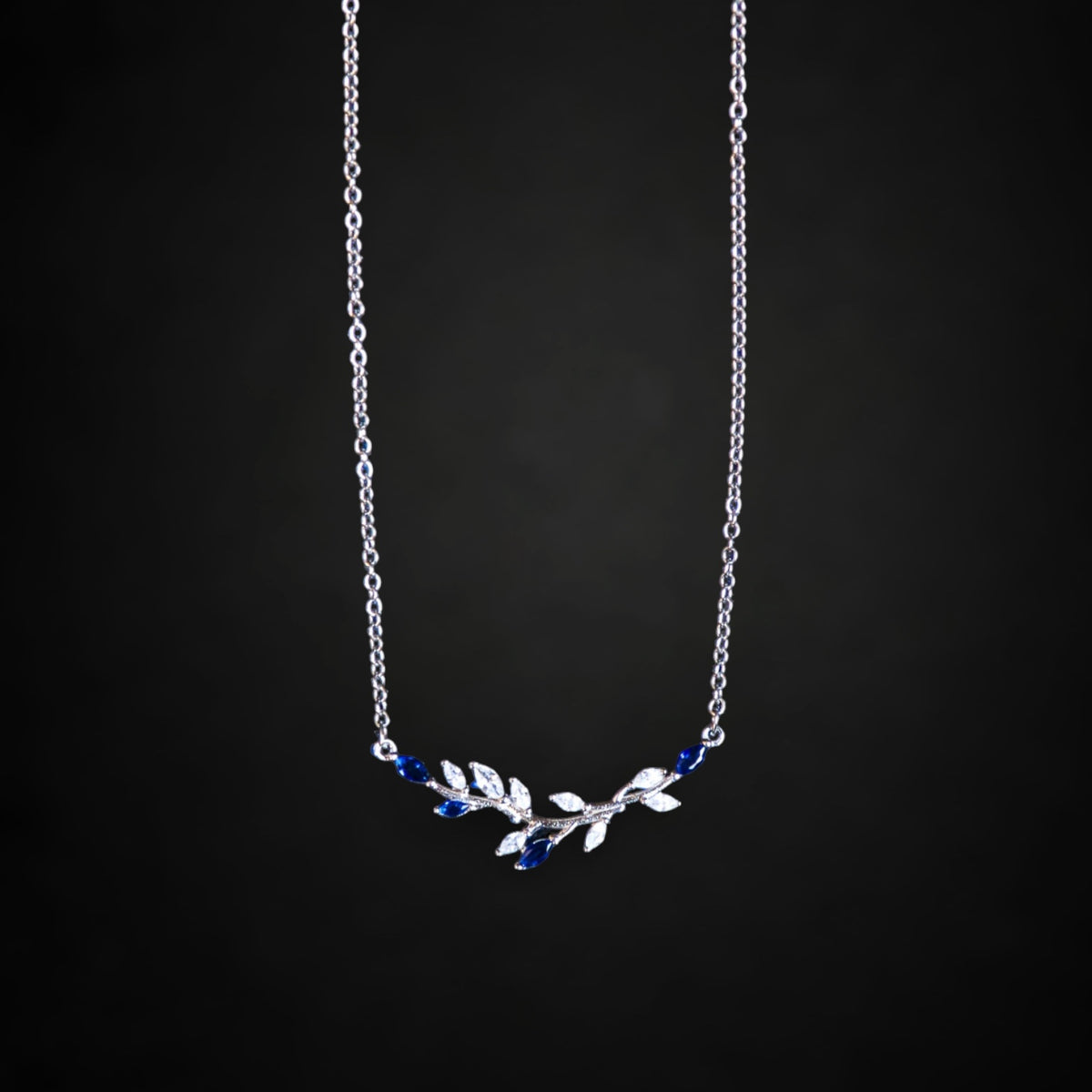 Inspired by nature’s elegance, the Blue Leaf Branch Necklace is crafted from genuine 925 sterling silver and adorned with deep blue crystals and sparkling cubic zirconia accents.